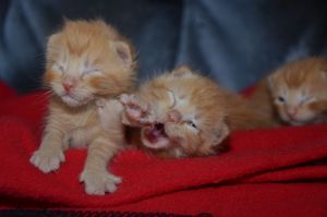 . Wir sind einfach einmalig und so was von süss. Lieb, ohne Krällchen, zärtlich und verschmust. Von wem wir das wissen? Na, alle sagen das, auch unsere Pflegeeltern und die müssen es ja wissen, denn sie pflegen uns nun schon eine Woche! Wir mussten nie baden, nie geputzt werden, nur das übliche Schöppeli Programm war angesagt, welches da heisst – füttern, Bäuchlein massieren, spielen, schmusen und zärtlich sein. Das wirkt, denn wir alle behalten unsere Krällchen in den Schäften, wenn wir geschmust werden und wir umgarnen unsere Pflegefamilie mit vollem Enthusiasmus. Wir sind clever, glaubt uns und wir werden immer cleverer