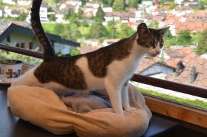Obwohl diese sehr nett sind und mich weder anfauchen noch sonst einschränken, brauchte ich etwas Zeit um mich an alle zu gewöhnen. Anfangs fauchte ich, sobald mir eine Katze zu nahe kam, doch nun stört mich das nicht mehr und ich fühle mich hier sehr wohl. Am liebsten geniesse ich es auf dem Balkon wo ich ins Grüne schauen kann und ich habe auch schon nach Schlupflöchern gesucht, doch leider keine gefunden.