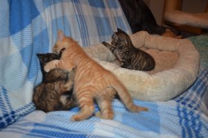 Ihr seht, mir geht es gut hier und ich werde wirklich verwöhnt. Nun muss ich nur noch lernen, dass gute Katzenfutter zu bevorzugen sind, denn leider bin ich bis heute eher auf dem Junkfood Tripp und achte weniger genau auf die richtige Kost. Aber da hier mehr gutes Futter steht als schlechtes, werde ich mich wohl in den nächsten Wochen dazu aufraffen auch dieses zu versuchen