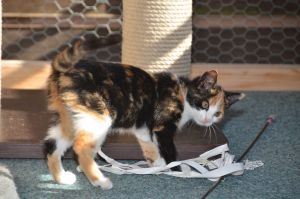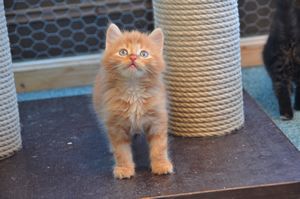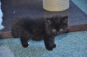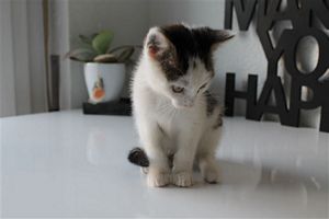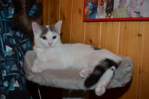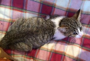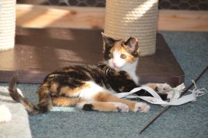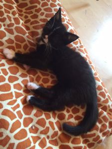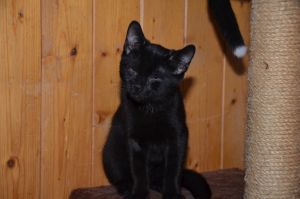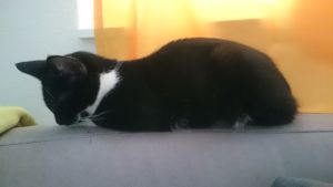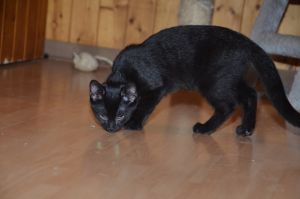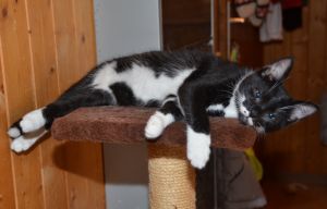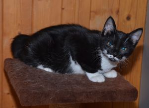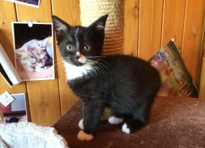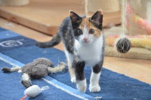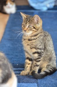 Chumani drückt bereits sein Köpfchen gegen die Hand der Menschen und schnurrt, wenn sie ihn lieb streicheln, doch geht er immer noch nicht von sich aus auf die Menschen zu.