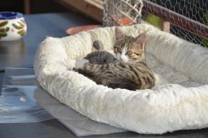 Am Mittwoch mussten wir zum Tierarzt. Der hat uns genau untersucht und dann den Leukose Test gemacht, der bei uns allen negativ ausgefallen ist. Nun dürfen wir erst Mal gut 8 Wochen alt werden, bevor wir erneut zu dem Herrn in Weiss müssen.