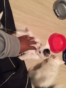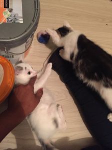 Am Sonntag kam Besuch für Treasure und obwohl der kleine Mann schlimmen Durchfall hatte und nicht so zwäg war, verliebten sich die Besucher in ihn und schenken ihm ein neues Zuhause. Es war wirklich schön zuzuschauen, wie sie liebevoll mit unserem Brüderchen umgingen und spielten.