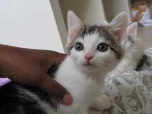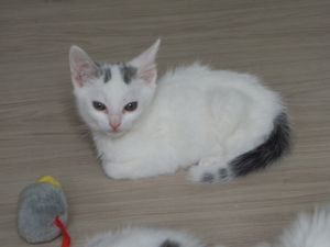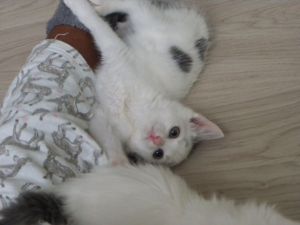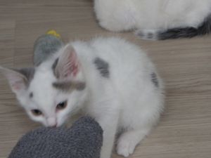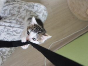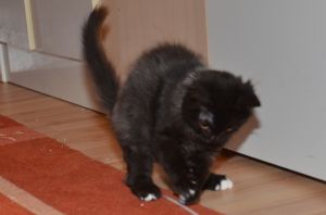 Dieser kleine Kater ist sehr verspielt und aufgestellt. Er schmust immer gerne und hält mich leider weiterhin für einen Kratzbaum. Er macht sich ein Spass daraus Anlauf zu nehmen und an mir hoch zu krakseln