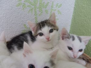 Mit meinen Katzenkumpels geht es auch super und ich tobe manchmal mit Chunami herum, der mich zuerst in meinen Schwanz beisst und mich ein wenig schikaniert, bevor ich dann reagiere. Doch man sieht uns beiden an, dass es nur ein Spiel ist und am Schluss kuscheln wir zusammen oder dösen ein wenig im gleichen Körbchen. Auch die anderen Kleinen hab ich unter Kontrolle und putze sie manchmal oder rüge sie, wenn sie was angestellt haben. Ich lebe mich in meiner Ersatz-Mami Rolle wieder voll ein. So, nun geh ich wieder nach dem Rechten schauen, denn die Kleinen kann man nicht allzu lange aus den Augen lassen… typisch Kids