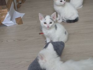 Mit den anderen grossen Katzen ist es überhaupt kein Problem. Nayati schläft bei uns und wir dürfen uns an ihn kuscheln, Jay versucht uns auszuweichen, da er uns Kleinen nicht traut, Beauty leckt uns manchmal ab und stellt sicher, dass wir saubere Kitten sind. Jeannie hilft bei unserer Erziehung, Maiky ist auch eher der feige Typ der sich verdünnisiert, wenn wir kommen und Aladdin ist einfach Aladdin. Er beschnuppert uns und sobald wir auf ihn zugehen, nimmt er Reissaus