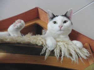 Als sein Frauchen mal gelüftet hat und er unbemerkt ins Zimmer schlich, machte eine Nachbarin mit vielen Gesten darauf aufmerksam, dass Monsieur auf dem Sims sitzt und die Aussicht geniesst. Er kann aber auch im Trio mitwirken, denn als Aby mal zum Tierarzt musste und alle drei noch auf dem Balkon waren als das Einfangen los ging, rannte er gemeinsam mit seinen Kumpels unter das Bett, so nach dem Motto „bloss nicht erwischen lassen“.