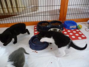 Sie haben übrigens alle problemlos das Katzenklo gefunden und probieren auch schon das eine oder andere Mal das Futter der Mamma. Sind wir gespannt was sie als nächstes entdecken…