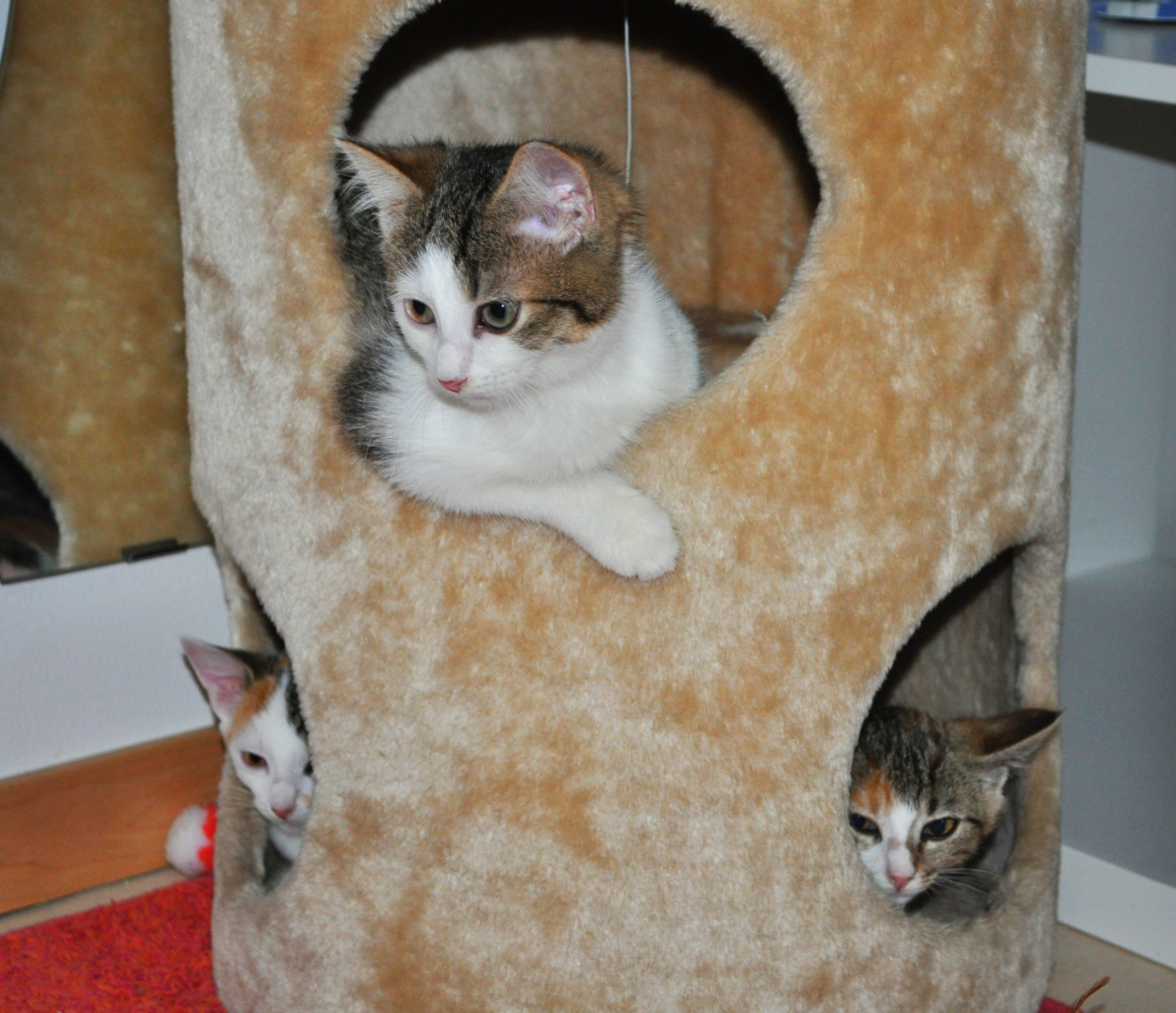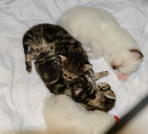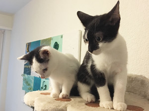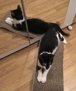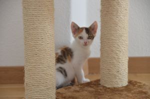 Mit den beiden anderen im Haus lebenden Katzen versteht sich Flame gut. Senda, ist zwar noch etwas zurückhaltend, dies aber nur weil Flämmli immer wieder mit ihr spielen will und Senda das zu viel wird. Mit Jim spielt sie dafür nicht sonderlich oft, dafür begrüssen sich die beiden Katzen herzlich, wenn sie sich sehen, was sehr süss ausschaut.