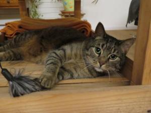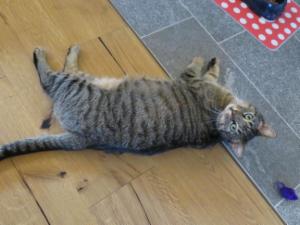 Cremi jagt gerne Fliegen doch meisten entwischen sie ihr wieder. Mäuse hat sie bis jetzt noch keine nach Hause gebracht, was ihre neue Mama auch gar nicht stört.
