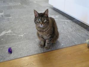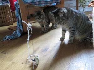 Mit dem mitgebrachten Stinkie versuchte ich das Eis zu brechen und es dauerte nicht lange bis Atis damit spielte. Doch schon kam Pip und klaute Atis das Stinkie. Er wollte damit spielen obwohl ich ihm ein Mäuschen hingelegt hatte. Es schien mir so, als möchte er einfach alles als erster haben