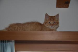 Als wir rein kamen verschwand Limbo sofort ins Zimmer. Ich denke es war mehr der plötzliche Lärm der Kinder als, dass er Angst hatte. Den ganzen Tag blieb er fern bis unsere Kleinsten dann ins Bett mussten. Dann schlich er sich nach vorne und kletterte auf die Wandtablare, die Cornelia und Hans extra für ihn gemacht haben. Er beobachtete uns von oben mit seinen neugierigen Augen.