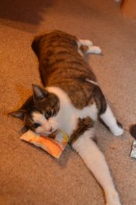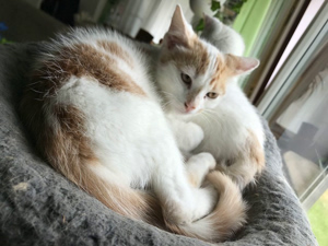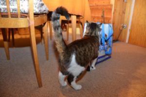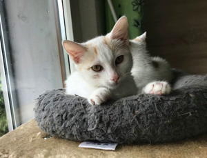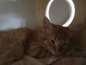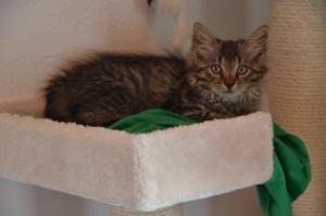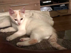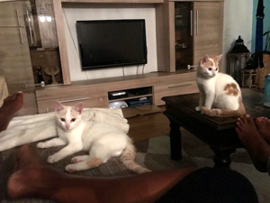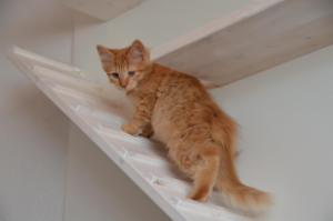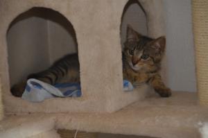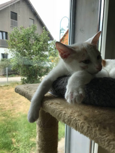 Simba hat sich gut eingelebt und fühlt sich wohl. Am Morgen möchte er immer spielen aber am Nachmittag schmüselet er auch gerne. Er ist ein guter Fliegenfänger