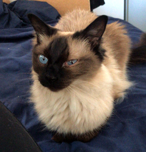 Manchmal döse ich an einem gemütlichen Ort vor mich hin, und mamchmal führe ich ganz gepflegt Konversation. Man sagt, dass sei typisch Siam, ebenso wie meine schönen blauen Augen und meine Eleganz!