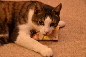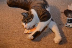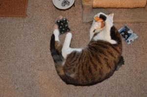 Manchmal helfen auch die beiden Kater mit, meistens helfen die beiden mehr mitzuspielen als unsere Mama
