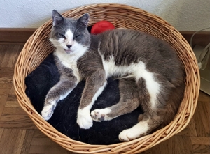 . Ich habe mich sehr schnell an die neue Umgebung gewöhnt. Lärm oder unerwartete laute Geräusche stören mich nicht, ich kenne und nutze das Katzenklo, und ich verbringe viel Zeit mit Schlafen. Sobald Menschen in der Wohnung sind, geselle ich mich zu ihnen und geniesse die Streicheleinheiten – davon kann ich fast nicht genug bekommen