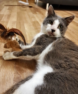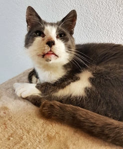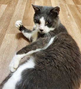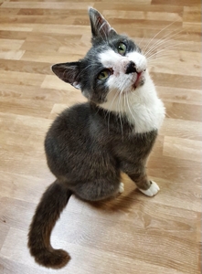 Ich möchte mich gerne vorstellen: Mein Name ist Neo und ich wohne seit ein paar Tagen in meiner neuen Pflegestelle. Ich wurde auf ungefähr 10 Jahre geschätzt und habe eine schöne grau-weisse Fellzeichnung.