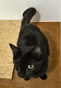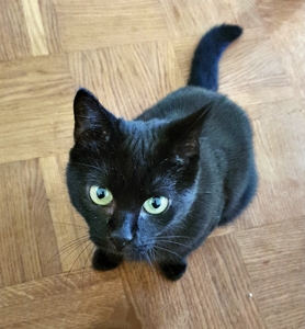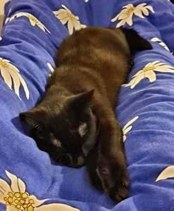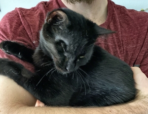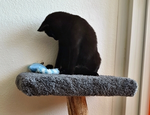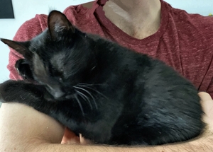 , hat er es gleich ins Bad getragen und etwas später brachte er ein feuchtes schwarzes Büsi nach dem anderen zu uns ins Zimmer. Wir mussten natürlich die vier Kleinen ganz gründlich beschnuppern