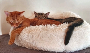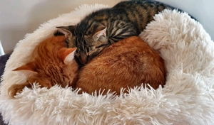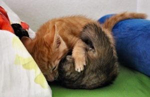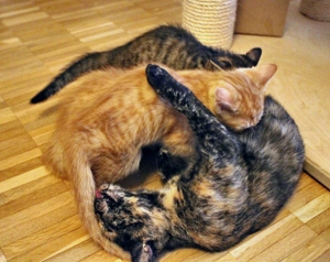 . Am ersten Abend wurde nur gefaucht, was verständlich ist, mussten auch sie am Nachmittag zum Tierarzt. Zum Glück sind die beiden gesund und munter bis auf die Würmer, aber die werden wir auch noch los.