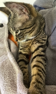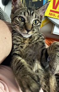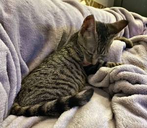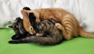 Vor ein paar Tagen zogen 3 neue Baby-Büsi bei uns ein. Zuerst kam Emeli am Morgen zu uns. Sie stammt von einem Hof im Kanton Solothurn. Sie wurde mir voller Flöhe übergeben und als erstes fauchte sie mich mal an