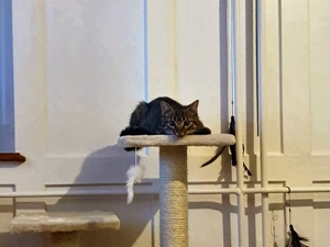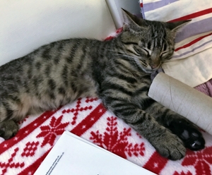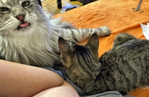 Wir glauben ja, sie geht wieder zur Schule und muss lernen. Dabei wollen wir doch ihre Aufmerksamkeit und, naja, die holen wir uns natürlich auch. Dann muss sie manchmal schimpfen, vor allem wenn wir anfangen ein wichtiges Papier anzuknabbern