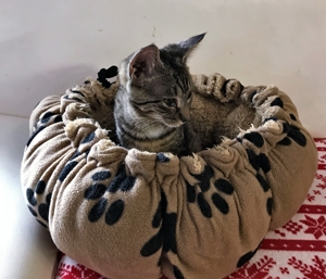 . Wenige Tage später gingen wir zum Tierarzt, wo sie untersucht und der Leukose Test (negativ) gemacht wurde. Mit dem Impfen wollten wir noch etwas warten, da sie noch nicht ganz auf der Höhe ist. Aber das wird so schnell als möglich nachgeholt.
