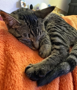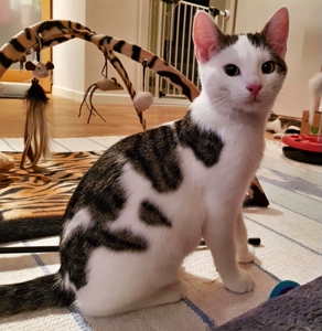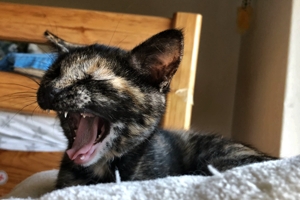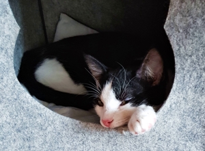 Ich bin eine etwas zurückhaltende Persönlichkeit. Ich liebe es mit Pflegefrauchen zu spielen, und manchmal sogar zu schmusen, dann schnurre ich dabei in einer Lautstärke. Meistens möchte ich aber nicht schmusen, Leckerli bekommen und Spielen ist viel cooler. Wenn mich etwas verängstigt, fauche ich noch, aber irgendwie muss man es ja sagen, wenn etwas nicht ok ist