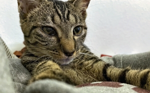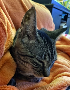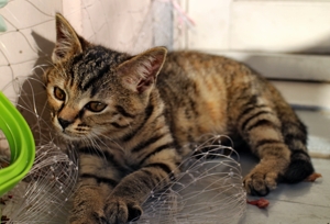? Zum Glück waren meine Kitten mit mir dabei. Nach kurzer Zeit habe ich aber begriffen, dass es hier ganz toll ist. Ich bekomme immer genügend zu fressen, man spielt mit mir, wobei ich sagen muss, am liebsten habe ich es, wenn ich hinter dem Ohr gekrault werde. Das ist so etwas Schönes. Von mir aus getraue ich noch nicht zu kommen. Aber wenn man mich zum Schmusen auffordert, da kann ich unmöglich nein sagen. Da lasse ich sogar mein Essen links liegen