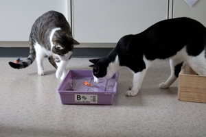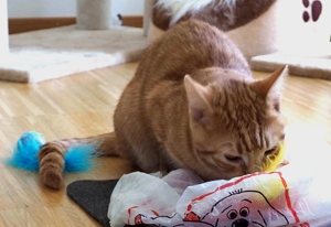 Ich hingegen habe nach einem geeigneten Versteck gesucht. Hinter dem Trockenfutter in der Küche? Im WC hinter der Tür? Hinter dem Katzenbaum in der Stube? Schon wieder diese Leckerlis! Die riechen auch wirklich verführerisch, da nehme ich doch mal eins