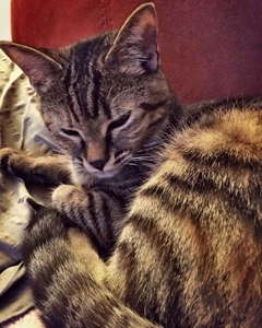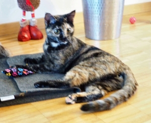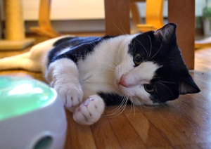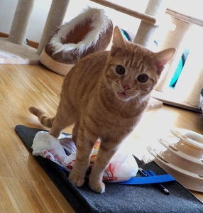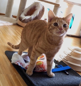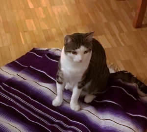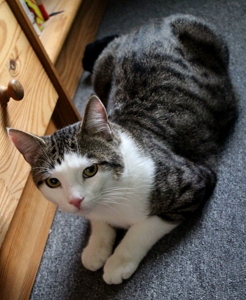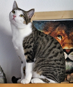 Chewbacca verzog sich kurz, als es klingelte. Er kam dann ziemlich schnell wieder und liess sich streicheln. Der schöne Kater hat ein glänzendes Fell. Er spielt gerne mit seinem Kumpelchen und die beiden haben sich super aneinander gewöhnt