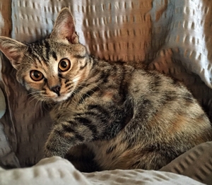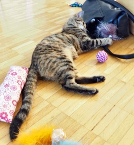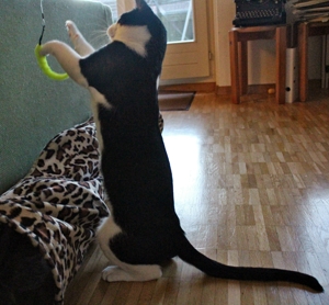 Lynn zeigte sich sehr neugierig und liess sich sofort streicheln. Das süsse Mädchen ist sehr verspielt und liess sich auch gleich zu einer Spielstunde überreden. Sie zeigte wie gut sie jagen kann und sprang voller Freude der Spielangel hinterher