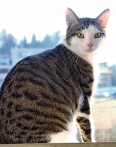 Lenny ist ein begeisterter Freigänger und verbringt die meisten Abende und Nächte im Freien. Mit der wunderschönen Wohnlage am Rande der Stadt hat er ein ideales Zuhause gefunden.