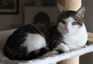 Er ist ein sehr lieber Kater, der kaum Unfug treibt oder etwas kaputt macht. Er lässt fast alles mit sich machen