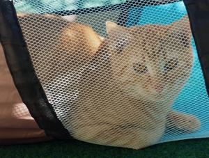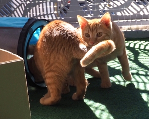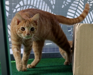 Die beiden roten Brüder von Hippie’s Kitten, Jimy und Joe, sind zwar etwas gewachsen, aber noch immer die gleichen, süssen Racker, die sie in der Pflegestelle waren. Jimy ist allerdings der aufgeschlossenere der beiden und hat die grosse Besuchergruppe gleich neugierig und freundlich begrüsst
