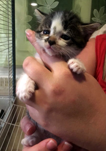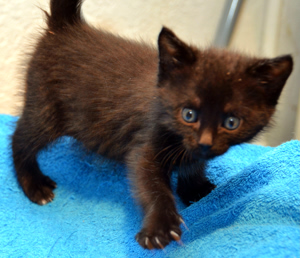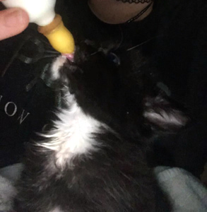Nur Liam findet das alles doof, er will kein Futter. Aber er bekam Milch in einem Tellerchen und weil es nichts anderes gab, schleckte er sie dann doch auf. Der Herr wollte ja bisher nur die Flasche, als wäre er noch ein Baby, dabei ist er doch schon fast zwei Wochen älter als wir. Weil wir sonst schon alle fressen, ist ab heute Schluss mit der Flasche. Unsere Pflegemami hat sie ihm weggenommen, so dass Liam nichts anderes bleibt, als auch aus dem Tellerchen zu fressen