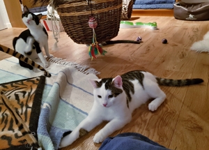 Ihr seht also, im Moment passiert nicht viel Aufregendes. Aber man sagt ja, dass wir Katzen die Routine lieben und wir fühlen uns gut, sind top fit und lieben unser Pflegemami (sie uns glaub ich auch