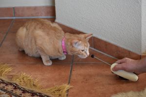 Dann hat Bruno mich beim Spielen in die Transportbox buxiert, dann wollte er bei Akela die gleiche List anwenden. Nach zehn Minuten war Akela noch nicht in der Box! Also Plan B, als mein Schwesterchen im Bad war, wurde beherzt zugepackt und Akela in die Transportbox gesteckt (Bruno musste dann zuerst seine Blutenden Hände verarzten