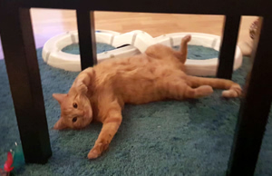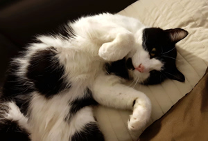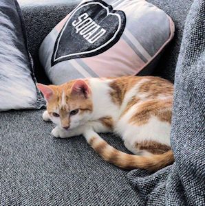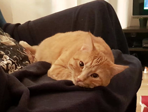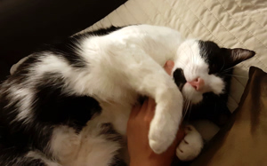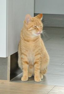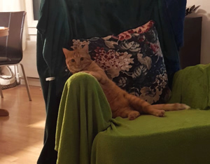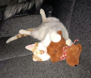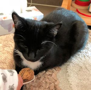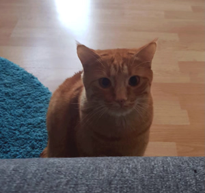 Nach ein paarmal Rufen fand ihn seine neue Mama unter seinem Lieblingsbusch draussen im Garten. Felix jagt gerne und bringt seine Beute manchmal nach Hause. Er kam zu uns rein und liess sich streicheln und schmüsele