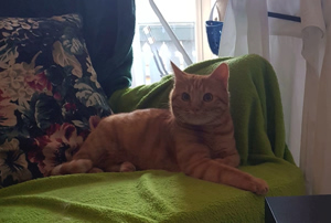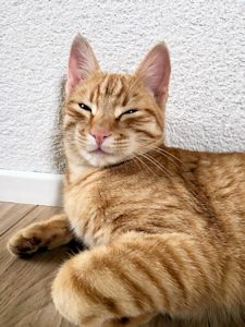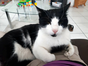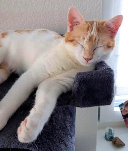 Felix war draussen im Garten als ich ankam und zeigte sich erst nicht. Doch seine neue Mama schwärmte von ihm. Er versteht sich super mit anderen Katzen und ist auch zu den Kinder ein toller Kater. Er spielt gelegentlich gerne und ist meistens zu allen freundlich