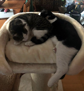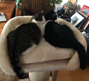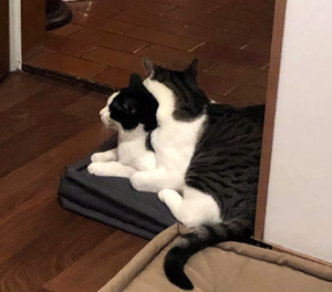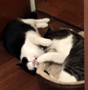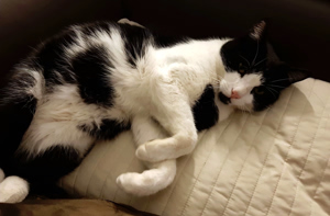 . Er umschwärmt Aurelia liebevoll, spielt mit ihr und gibt dazu einige ganz deutliche und fröhliche Kommentare ab. Am Freitag Nachmittag hat er meinen Platz im Ehebett übernommen und die Dame des Hauses fast drei Stunden lang liebevoll und schnurrend betreut. Alles spricht dafür, dass in unserer Wohnung jetzt die Sonne täglich nicht nur einmal aufgeht…
