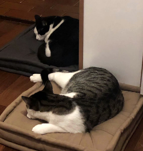 mich erst gar nicht aus der Box. Doch irgendwan war meine Neugier doch grösser und ich erkundete langsam die neue Wohnung. Als dann aber mein neues Kumpelchen kam, passte mir das erst gar nicht und es wurde kurz gefaucht. Doch Aurelia liess das kalt. Ich machte zwei, drei Runden und verzog mich dann erst mal