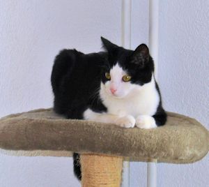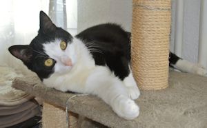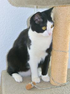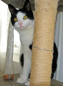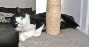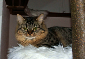 Milou sass bei unserer Ankunft auf dem Kratzbaum und liess sich streicheln. Danach zog sie sich für eine Weile zurück, liess sich aber auf dem Kratzbaum seht gut fotografieren und genoss die Streicheleinheiten