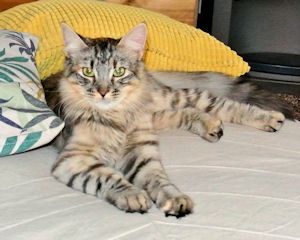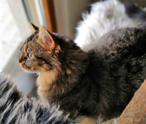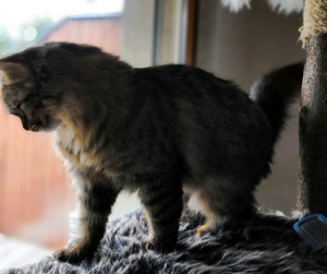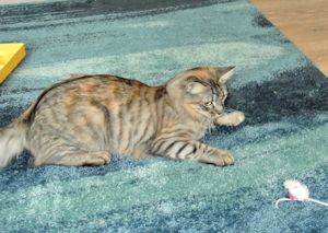 Sie spielt gerne und kommt von sich aus schmüsele. Chewie liess sich nach einiger Zeit auf dem Kratzbaum streicheln. Wenn sie kuscheln möchte, sitzt sie gerne dort, lässt sich kraulen und bürsten und entspannt sich super. Sie liebt die Spielangel oder ihre Stoffmäuse. Das süsse Mädchen hat samtweiches Fell und sieht aus wie ein kleiner Löwe.