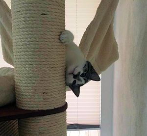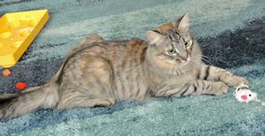 . Loona liebt es mit Stoffmäusen zu spielen und apportiert diese auch gerne. Sie haben drei riesige Kratzbäume, die sie gerne zum Klettern oder Relaxen nutzen.