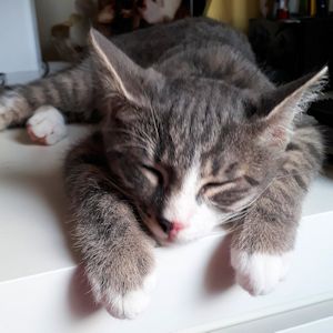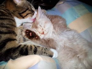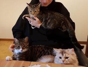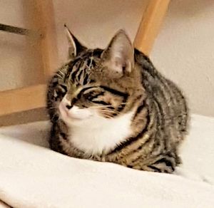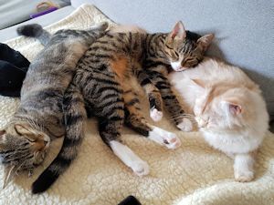 . Er versteht sich gut mit dem beiden anderen Katzen.