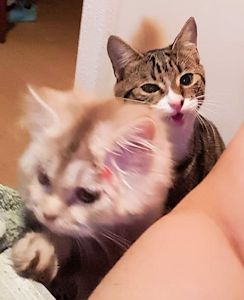 . Vor allem Tinka liebt die Aufmerksamkeit und lässt immer gleich ihr Motörchen laufen. Yaro spielt sehr gerne mit der Federangel oder jagt Tinka durch die Wohnung.