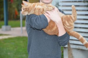 Er hilft genauso beim Schnee schaufeln oder Laub rechen, wie er keine Angst vor dem Staubsauger kennt oder sich sonst irgendwie verdrückt. Ein frecher, vorwitziger Kater ist er und alle haben in abgöttisch lieb
