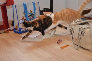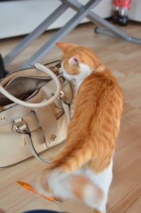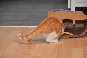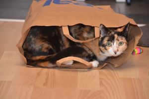 Unsere liebe Ayosha mag Tüten so sehr, dass sie einmal im oberen Stockwerk so schnell in eine hinein gesprungen ist, dass diese sich selbständig machte und mit der kleinen Maus die Treppe runter kullerte. Passiert ist nichts und wir hoffen, dass es einen Lerneffekt für Ayosha hatte
