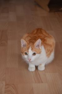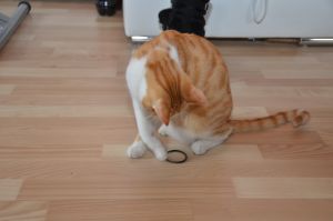 Fips begrüsste und gleich beim Eintreten und lag zwischen meine Beine, da ich im Schneidersitz auf dem Boden sass. Es war, als wäre er bei uns zu Hause als Pflegekitten – einfach wie immer und sowas von voller Vertrauen! Total aufgeschlossen, neugierig und verspielt ist dieser süsse Kater und einfach toll. So lieb, zutraulich und seinen Menschen gegenüber ein Schmusekater