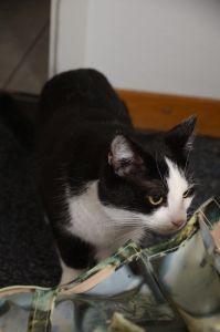 Schon beim Eintreten war die liebenswerte Katzendame anwesend und beglückte mich auf dem Hochbett des Kindes. Als erstes stand das abschnuppern auf dem Programm, kurz vor dem ablecken, denn sie fand meine Düfte unwiderstehlich