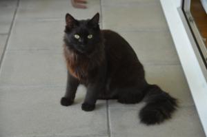 Die beiden Kater verstehen sich sehr gut und spielen meist etwas ruppiger miteinander. Doch es ist immer friedlich und harmonisch. Die zwei sehen sich auch sehr ähnlich. Beide sind schwarz, Langhaar und in etwa gleich gross.